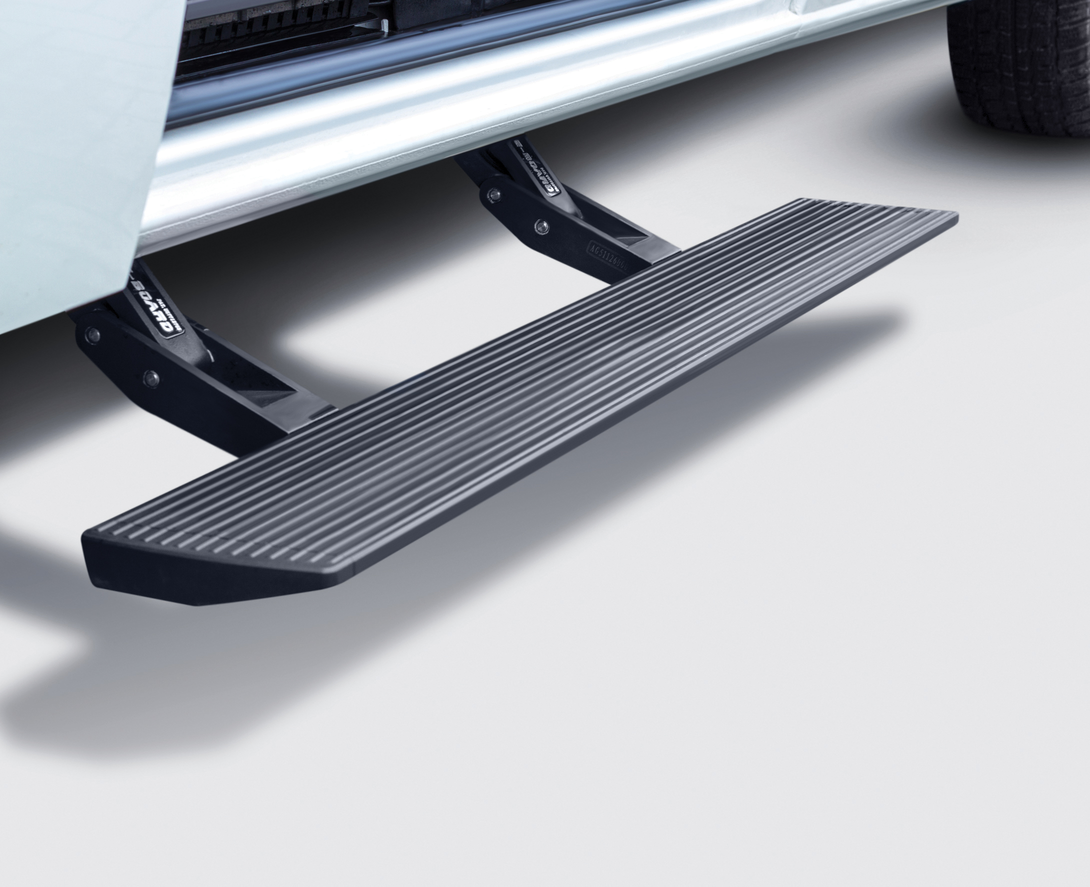 Zusätzlich begeistert die integrierte LED-Beuleuchtung die Benutzer. Der revolutionäre Schwenkmechanismus sorgt im eingefahrenen Zustand dafür, dass die Bodenfreiheit des Fahrzeugs kaum beeinträchtigt wird, und der Auftritt sich im ausgefahrenen Zustand in einer ergonomisch idealen Position befindet.